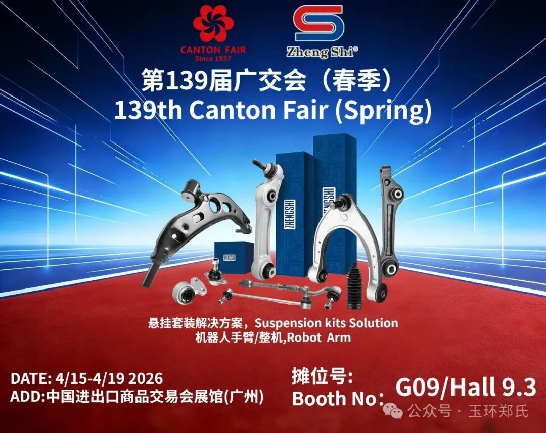 第 139 届广交会第一期盛大开幕!zhengshi® 携全新底盘件、悬挂一站式解决方案及高端球头产品亮相,诚邀全球客商莅临洽谈。